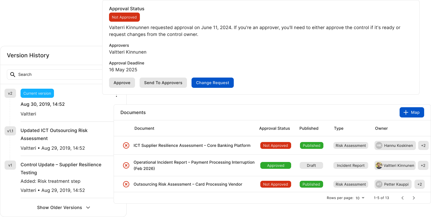 Perinteinen riskimatriisi näyttää tilanteen vain yhdellä hetkellä. DORA- ja AML-vaatimuksissa se ei riitä. Gover päivittää riskitason automaattisesti sen mukaan, miten kontrollit todellisuudessa toimivat.